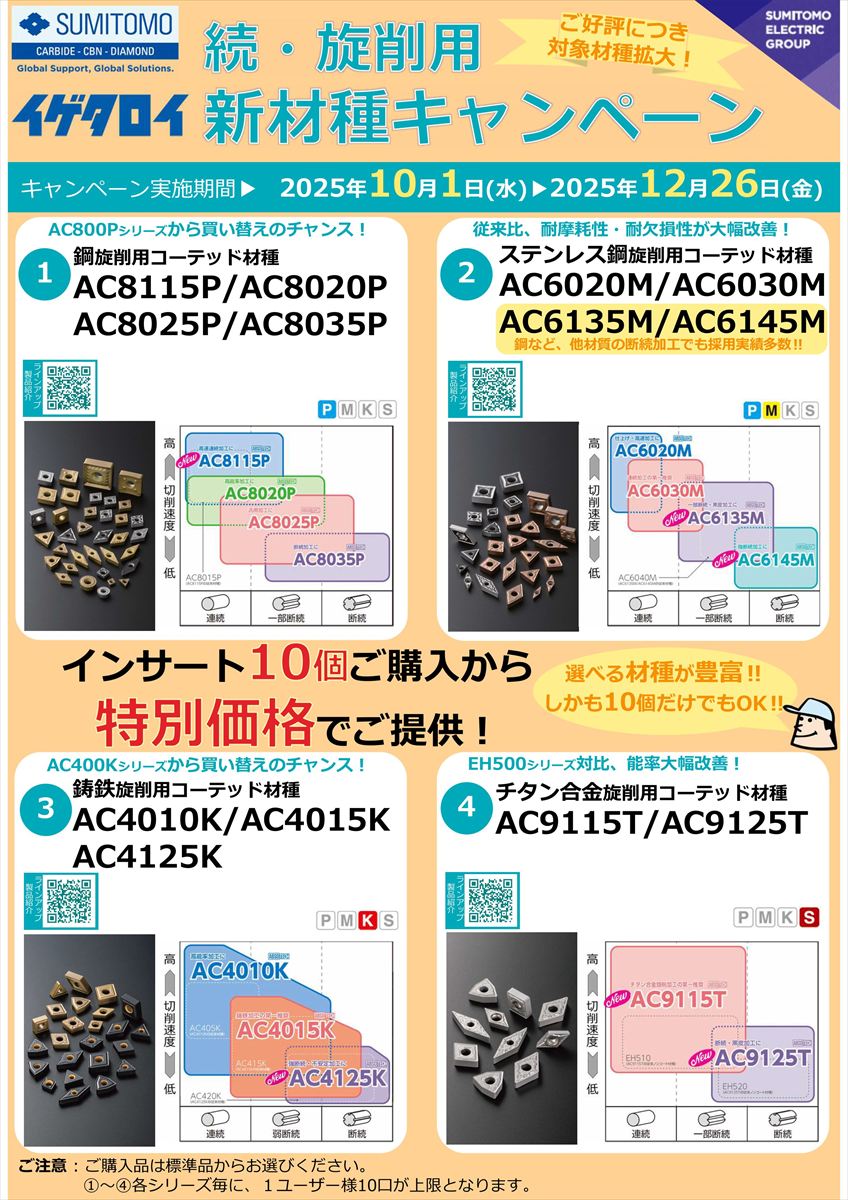 イゲタロイ 続・旋削用 新材種キャンペーン 2025年10月1日(水)~12月26日(金)