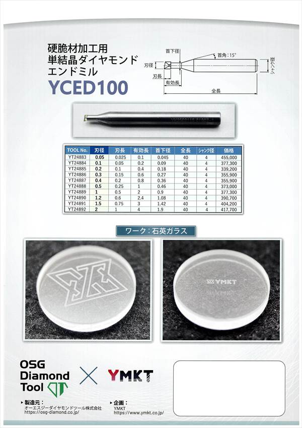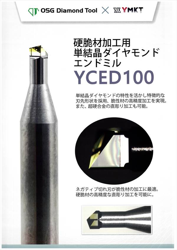 OSG Diamond Tool × YMKT 硬脆材加工用 単結晶ダイヤモンドエンドミル YCED100