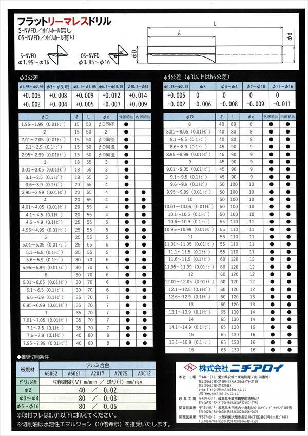 ニチアロイ フラットリーマレスドリル S-NVFD/OS-NVFD 製品紹介