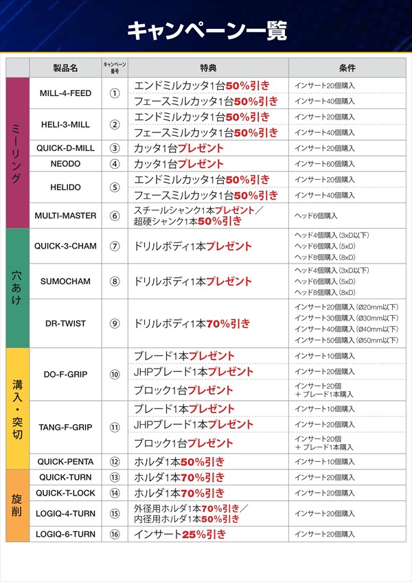 幅広い加工分野に対応する製品が対象となっています。